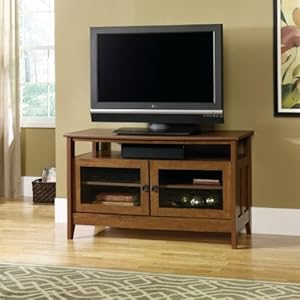 Inspired by the elegantly livedin look of true antique furniture, the August Hill Collection from Sauder Woodworking brings a bit of historic charm to any room. With it's warm Oiled Oak finish and Bronzed hardware, August Hill combines the look of handforged craftsmanship with today's modern featuresThe August Hill Widescreen TV Stand is designed to hold most flat panel TVs up to 42'' or 70 lbs. Open space below TV shelf can hold home theat... Read More...