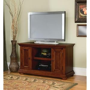 The Home Styles Homestead TV Stand in a rich multi step distressed warm oak finish features warm transitional styling and comfortable, functional design. Features: Poplar hardwood construction with Cherry veneers and engineered woods Rich multi-step distressed warm oak finish Perfect for flat screen TVs up to 42" Two cabinets, one on each side feature raised wood detail Adjustable shelf inside Open center storage compartment has adju... Read More...